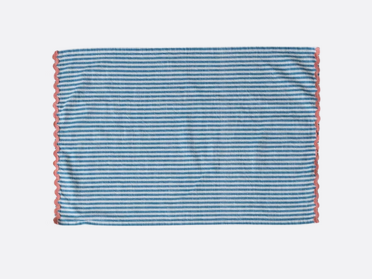 Woven Cotton Striped Tea Towel with Ric Rac Trim