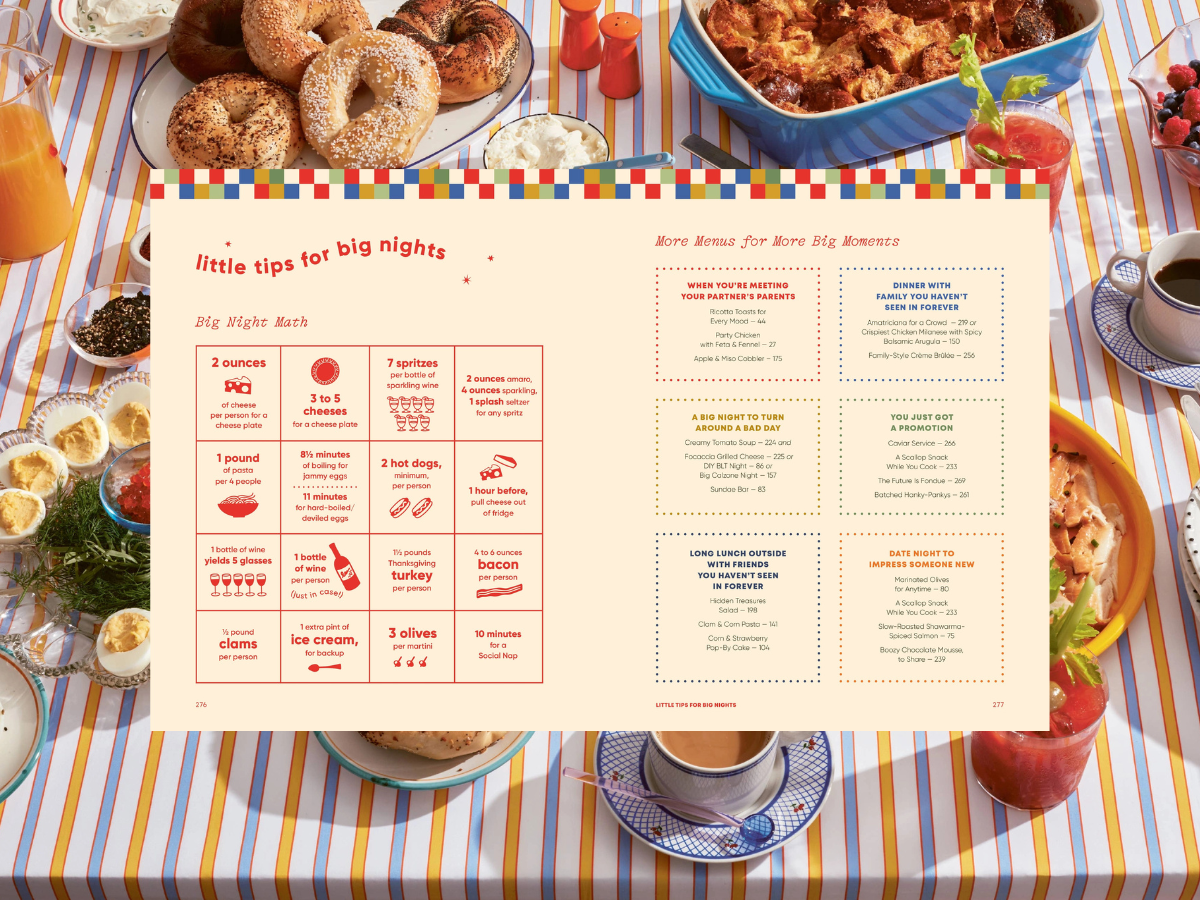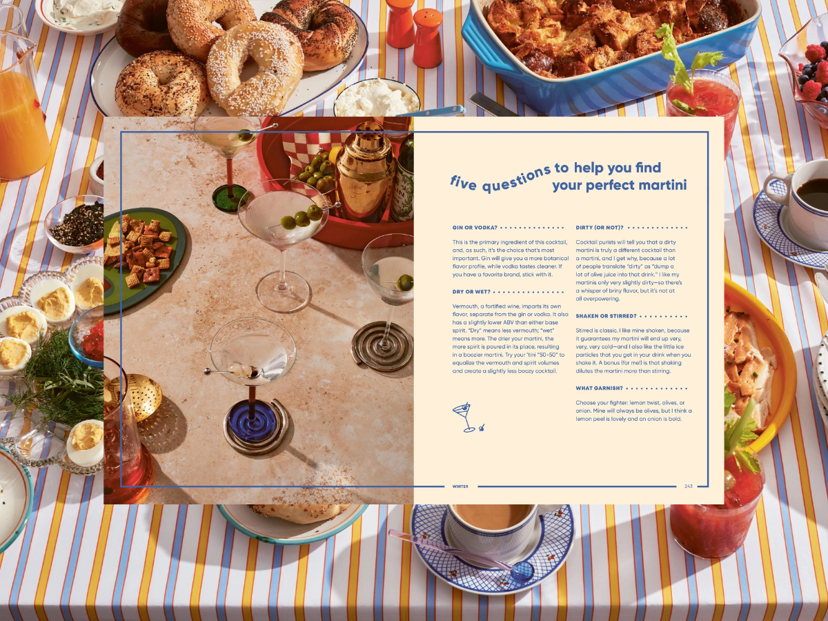 Learn how to Stop Worrying About Everything Matching and Just Set the Table; the step-by-step formula for discovering your (and your guests’) Perfect Martini; and the Cheese Plate of Dreams math of how many ounces to plan per person