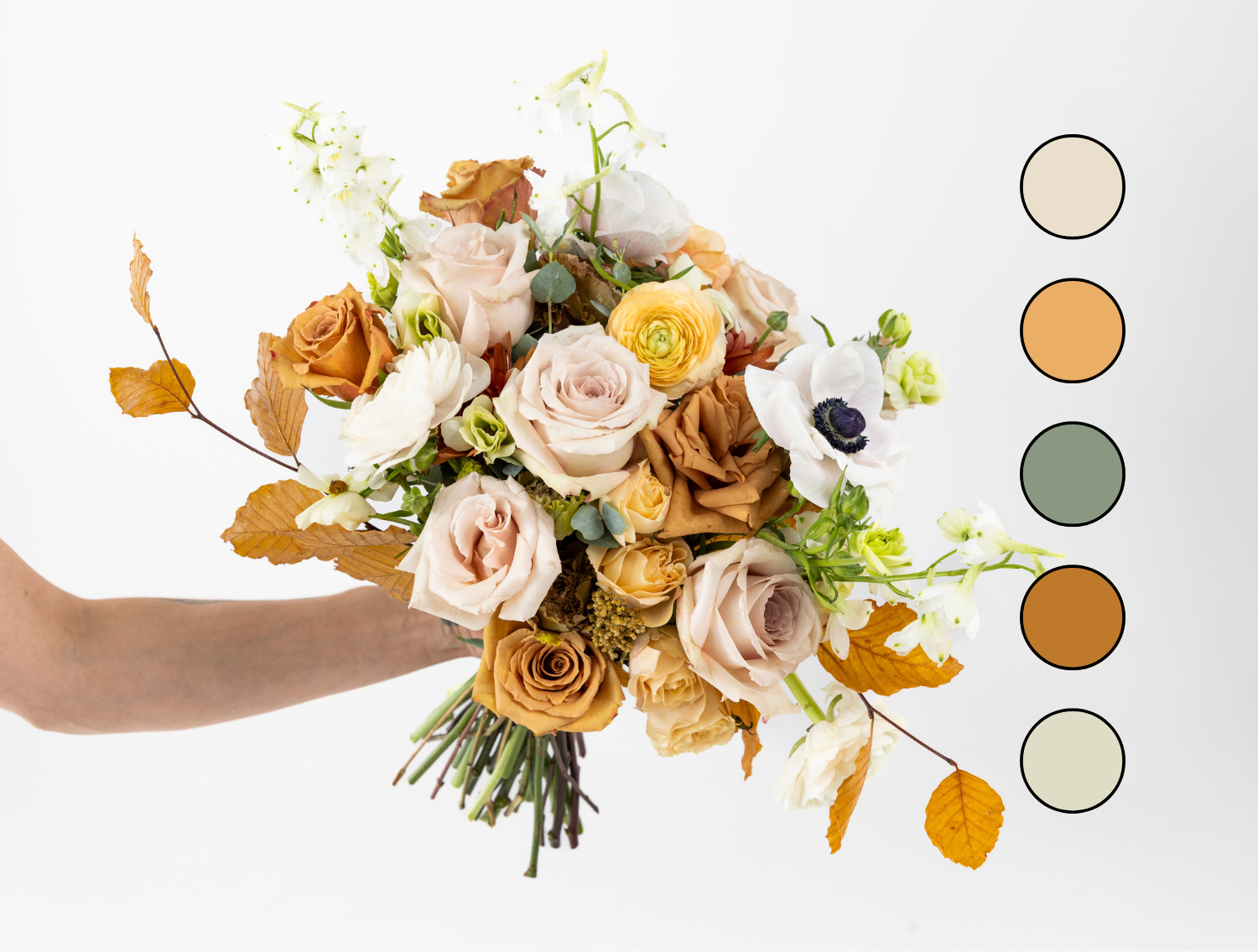 Items will not be exact matches due to seasonality and natural color variations. We will always use fresh, in season blooms to make sure you are receiving quality flowers in your chosen palette for your celebration.
