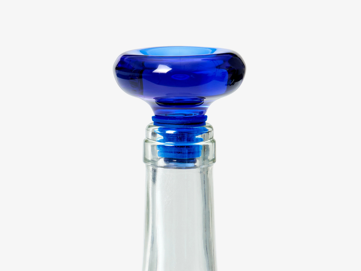 This glass bottle stopper takes its shape from the designer's line of hardware knobs while celebrating the beloved ritual of sharing a drink with friends. Hobknobbing, if you will. Pop it into an open bottle of your favorite beverage to keep it fresh and looking smart.